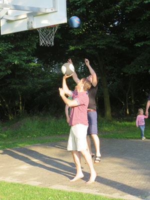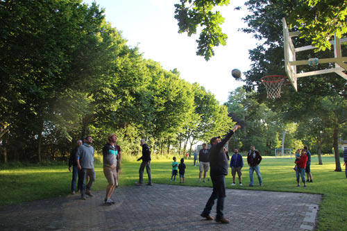 Basketball begeistert uns als Sport, daher gibt es natürlich einen Platz mit einem vernünftigen Basketballkorb bei uns – das ist ja klar. Die großen Bäume sorgen dafür, dass ein Spiel oder das einfache Training auch bei Sonne stattfinden kann. Die Fotos zeigen, dass es hier nicht nur um die Kinder oder die Jugend geht, sondern auch die Eltern ! Häufig sind die Väter hier anzutreffen. Unbedingt einen Basketball mitbringen !